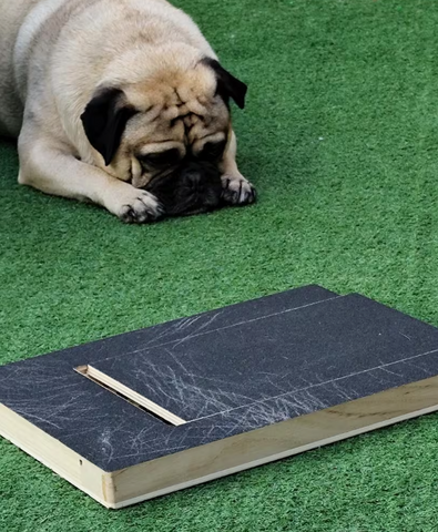 Sí. El tablero está diseñado con una superficie de limado segura que desgasta la uña poco a poco mientras tu perro rasca para alcanzar la recompensa.