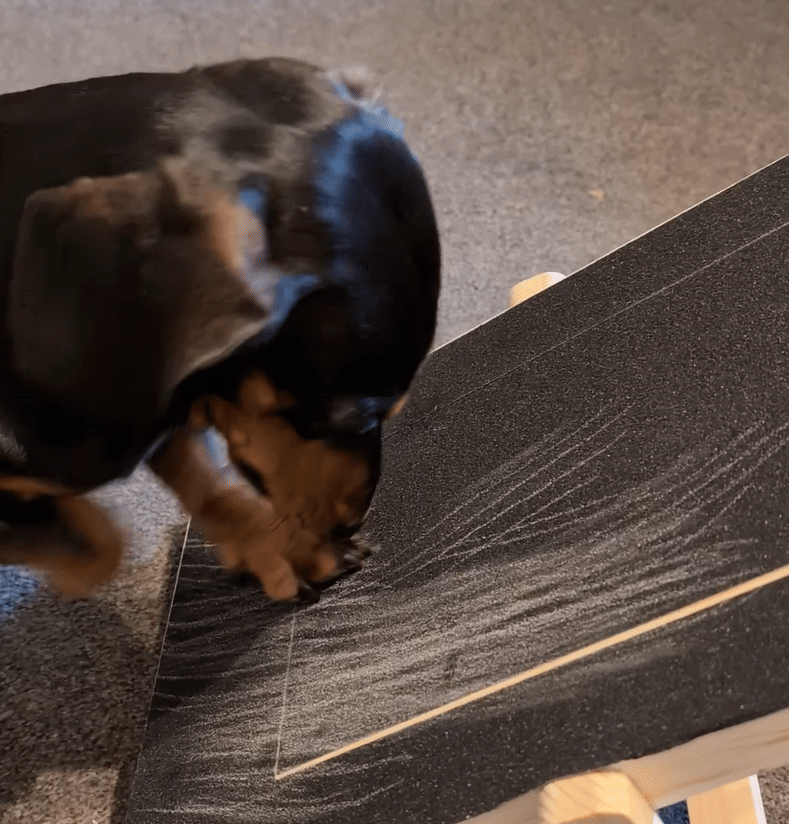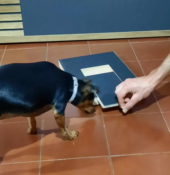 Pensé que sería el típico producto que mi perro ignoraría… pero no. Le puse un trocito de salchicha dentro y empezó a rascar al momento. Las uñas se van limando poco a poco, mucho más fácil que las tijeras.